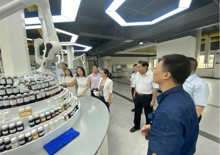 李志旭一行在程志昆的陪同下,参观了武汉黄鹤楼香精香料有限公司调配车间、提取车间、调香实验室。认真听取企业关于当前经营现状、高端人才需求和研发瓶颈问题的介绍,了解相关工艺流程和生产工序。
