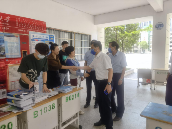 在新洲招生宣传现场,程幼金与公司工作人员进行亲切交谈,认真听取关于当前招生宣传工作的进展汇报,了解有报考公司意向考生的信息登记情况,指导招生宣传工作,对奋战在招生宣传工作一线的教职工及志愿者致以亲切慰问。