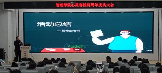 最后,胡青云老师做了总结。胡老师指出,心灵客栈协会经过两年的发展已经有了很大的提升,组织架构完备、校园影响力强,激励同学们要不忘客栈成立初心,牢记心理健康教育使命,以后更好地投入到心理健康工作当中。希望心灵客栈协会能总结经验,改正不足,进一步发挥好学院心理健康二级工作站服务同学的作用。